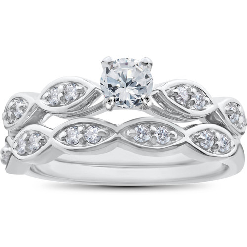 This women’s ring set features a .28 CT center and 18 round diamonds.All diamonds are set in solid 14k white gold.Finger size 7.